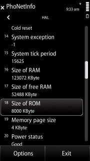 As it sounds, despite the presence of a widgetised homescreen, an extra few Megabytes of RAM have been made available, with roughly 54MB of free RAM after booting. Don't get too excited though, S60 5th Edition never really used its limited RAM very well and it's all too easy to still run out - just load up a 'modern' multi-megabyte web page and watch what happens. Still, the more RAM optimisations the better, so.